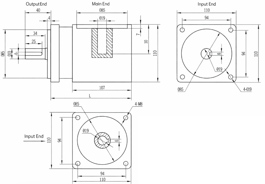 - 19mm input motor shaft