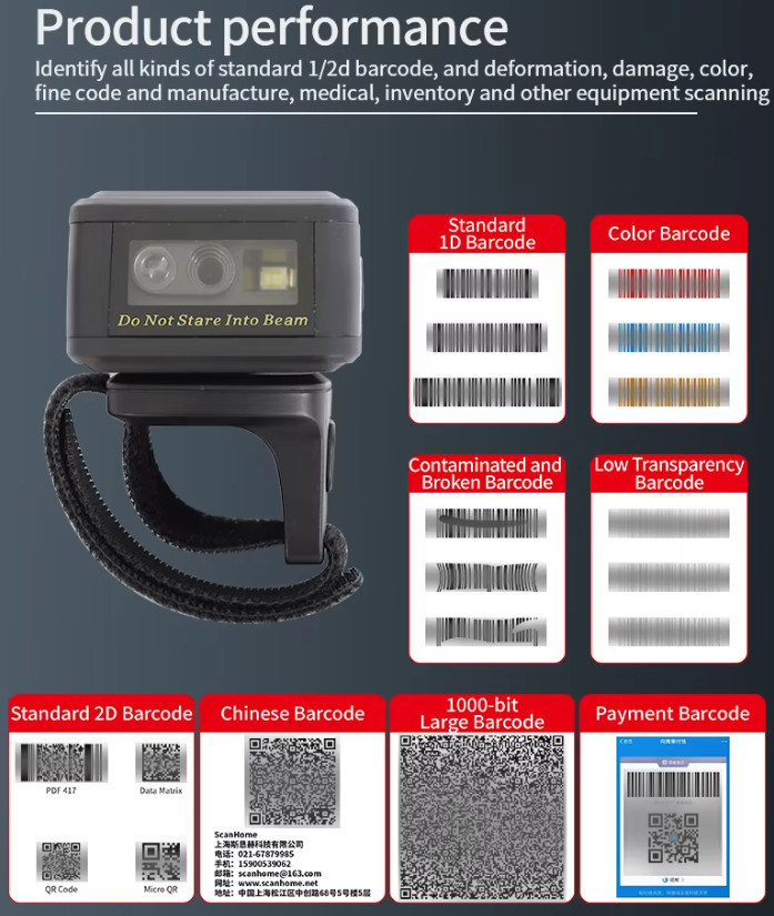 1D/2D (QR Code ) Wireless Bluetooth Finger Ring Scanner Sensor Application Wireless Bluetooth Finger Ring Scanner Warehouses, Convenience stores