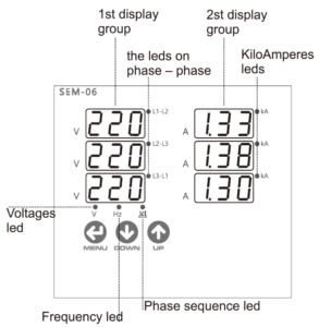 • แสดงค่า แรงดันเฟส-นิวทรัล, แรงดันเฟส-เฟส, ความถี่, ลำดับเฟส และ ค่ากระแส
