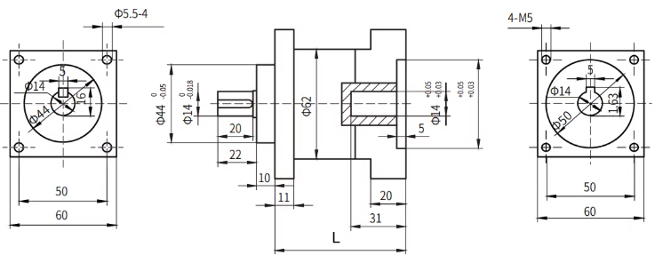 - ขนาดหน้าแปลน: 60 x 60 mm.