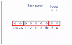 - ขั้วสัญญาณ: HL, GND, 24V, 1, 2, 4, 8, dp, RG