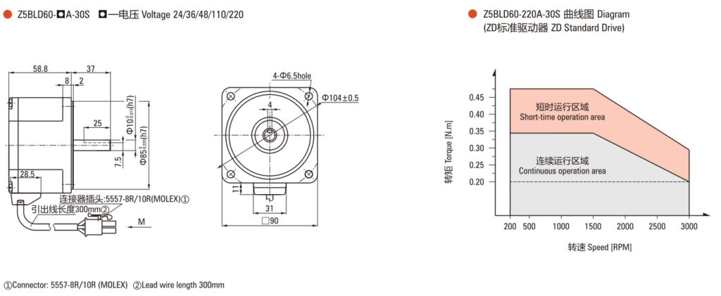- 60W 90mm BLDC Motor Z5BLD60 DC24