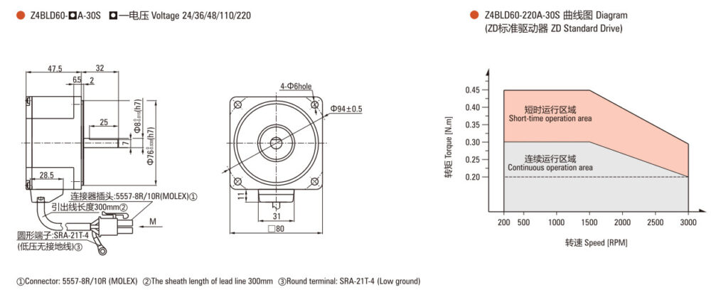 - 60W 80mm BLDC Motor Z4BLD60 220