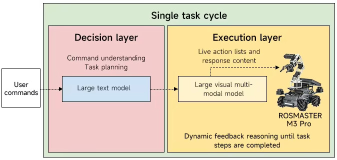 ROSMASTER M3 Pro ใช้โครงสร้างการประมวลผลแบบ สองโมเดลร่วม (Dual-Model System)