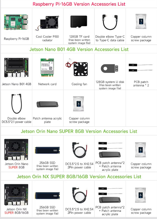 | 🔹 Main Control Board (เลือกได้) | Raspberry Pi5-16GB/ Jetson Nano 4GB / Jetson Orin Nano Super 8GB / Jetson Orin NX Super 8GB, 16GB |
