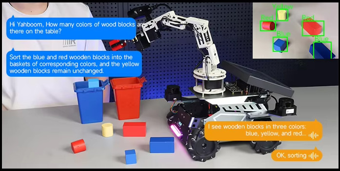 “Hi Yahboom, how many colors of wood blocks are there on the table?”