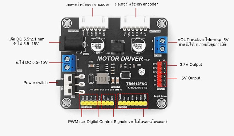 - จำนวนช่องขับ 2 ช่อง (ขับมอเตอร์ได้ 2 ตัว)