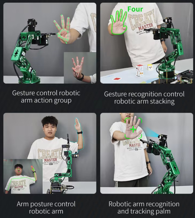 Built-in a variety of Al function, you can watch the robotic arm recognition screen in real time and support gesture interaction, mobile tracking, garbage sorting.