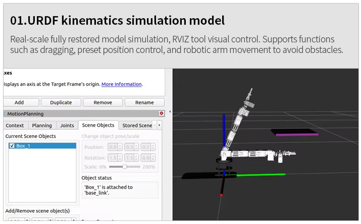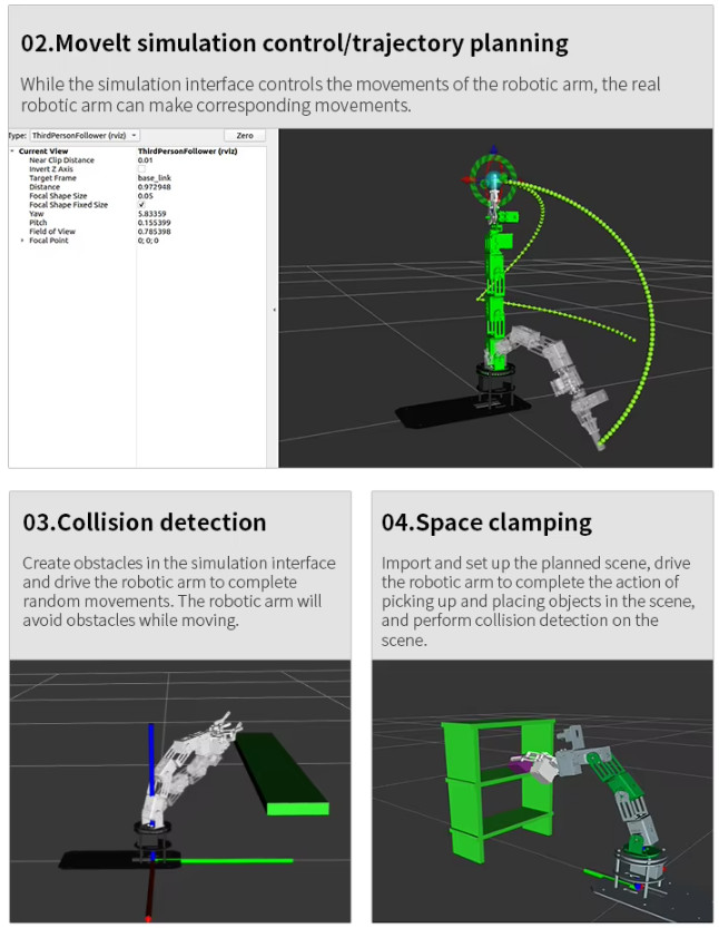 | Function | Interconnection control, MoveIt motion planning, Rviz robot simulation, 2D visual interaction |