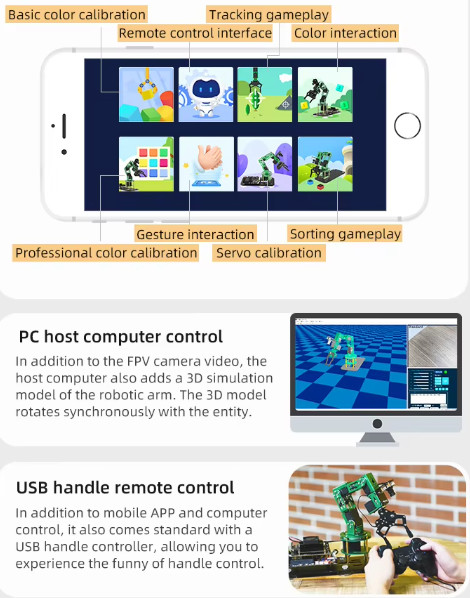 - ควบคุมผ่านมือถือ Android/iOS, คอมพิวเตอร์, จอยเกม หรือ Jupyter Lab