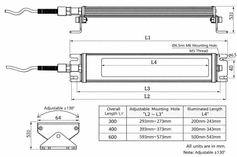 ไฟ LED 3 Antis Machine Light LED CNC Machine Tools Work Waterproof Oilproof Explosion-proof หลอดไฟ LED สำหรับเครื่อง CNC งานน้ำมัน-น้ำหล่อเย็น / กันน้ำ / กันฝุ่น / กันน้ำมัน