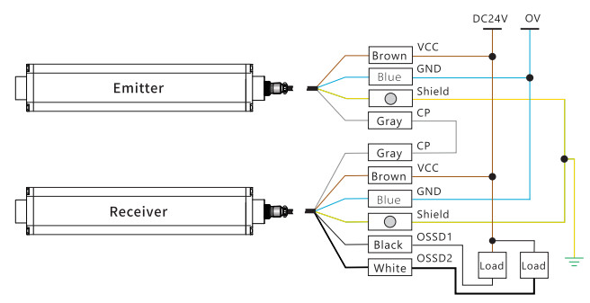 ตัวส่งสัญญาณ Emitter จะส่งสัญญาณแสงไปยังตัวรับ Receiver และสร้างม่านป้องกัน ตัวรับจะตรวจสอบการตัดผ่านม่านแสงและประมวลผลสถานะการตัดผ่าน สัญญาณ OUTPUT NPN หรือ PNP จะส่งต่อไปยังตัวควบคุมแบบ Logic เช่น PLC เพื่อรับรู้ และทำการหยุดหรือการส่งสัญญาณเตือนต่อไป แอปพลิเคชัน ใช้ได้กับสถานการณ์หรือเครื่องจักรกลางแจ้ง ทำงานที่มีความเสี่ยงอันตรายกับคน เช่น เครื่องดัดท่อ อุปกรณ์อัตโนมัติ และเครื่องอัดไฮดรอลิก ฯลฯ