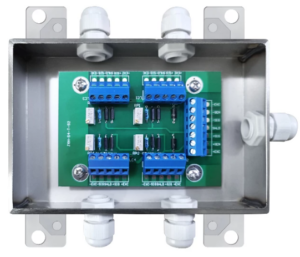 การใช้งานกล่องรวมสัญญาณโหลดเซลล์ (Load Cell Junction Box) แบบ 4 ช่อง Input มีวัตถุประสงค์หลักเพื่อ รวมสัญญาณจากโหลดเซลล์หลายตัว ให้เป็นสัญญาณเดียวที่สามารถส่งต่อไปยังเครื่องอ่านหรืออินดิเคเตอร์ได้อย่างแม่นยำและมีเสถียรภาพ โดยเฉพาะในระบบชั่งน้ำหนักที่ใช้โหลดเซลล์มากกว่า 1 ตัว เช่น เครื่องชั่งถัง, เครื่องชั่งแท่น, เครื่องชั่งรถบรรทุก เป็นต้น