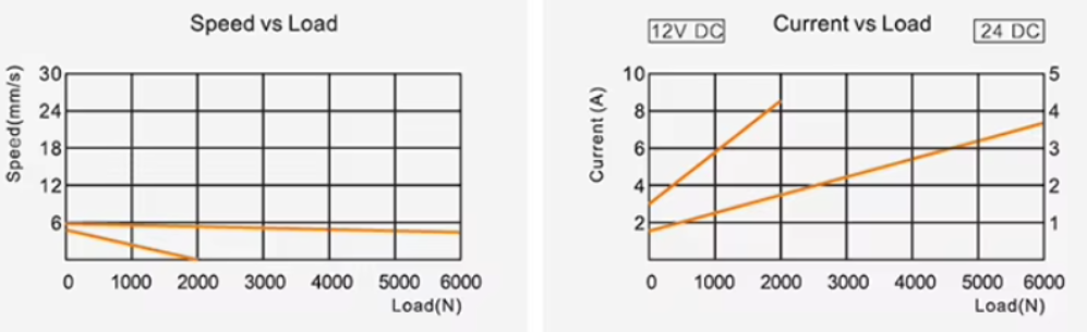 • ความเร็วต่ำ → แรงยกได้สูง รุ่น 24V ให้แรงยกมากกว่า 12V ที่ความเร็วเท่ากัน