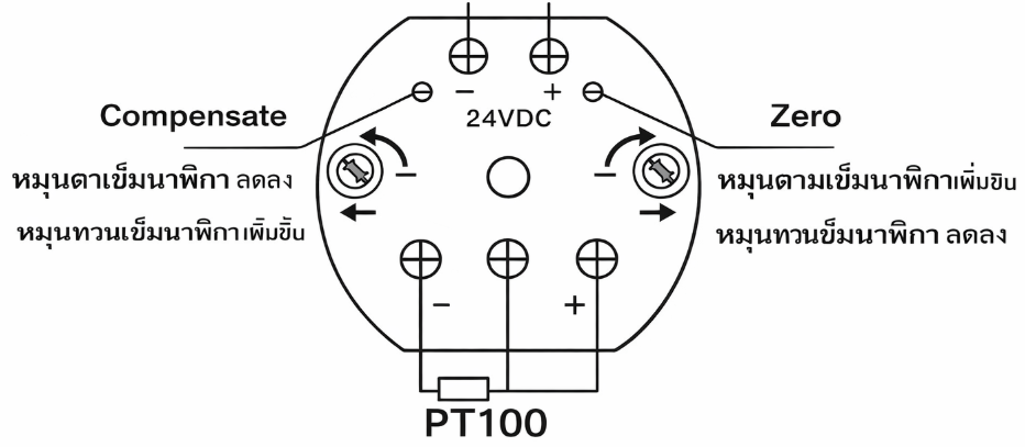 - Zero โพเทนชิออมิเตอร์ด้านซ้าย ใช้ปรับ Zero เมื่อหมุนตามเข็มนาฬิกา > ค่าเพิ่มขึ้น หมุนทวนเข็มนาฬิกา > ค่าลดลง