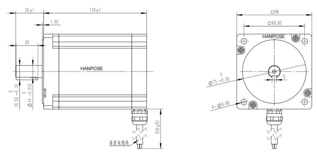 - ขนาดหน้าแปลน (Frame size) 86 × 86 mm (NEMA 34)