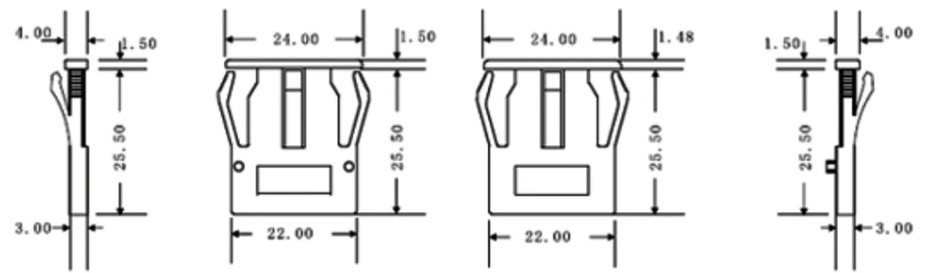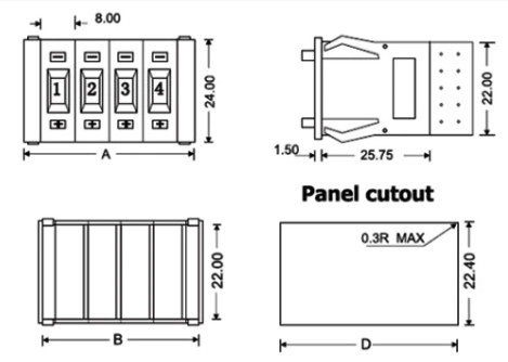• ขนาดรูเจาะ (Panel cut-out)  D13x22mm ขนาดที่ควรใช้เจาะแผงเพื่อใส่พอดี