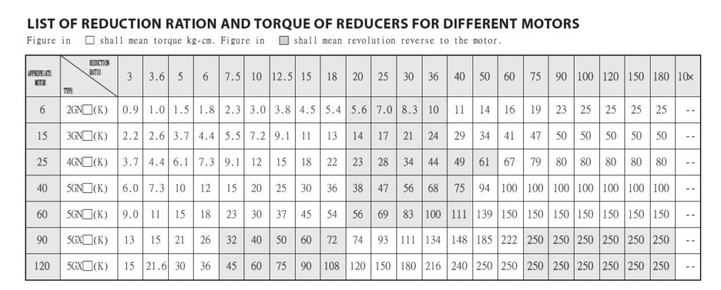 Rated Torque ตามตารางของเกียร์