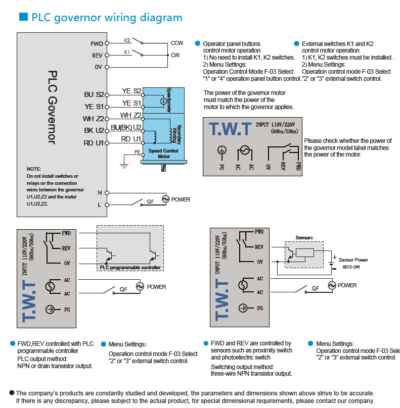- FWD and REV controlled by PLC Programmable controller PLC output method NPN or Drain Transistor output.